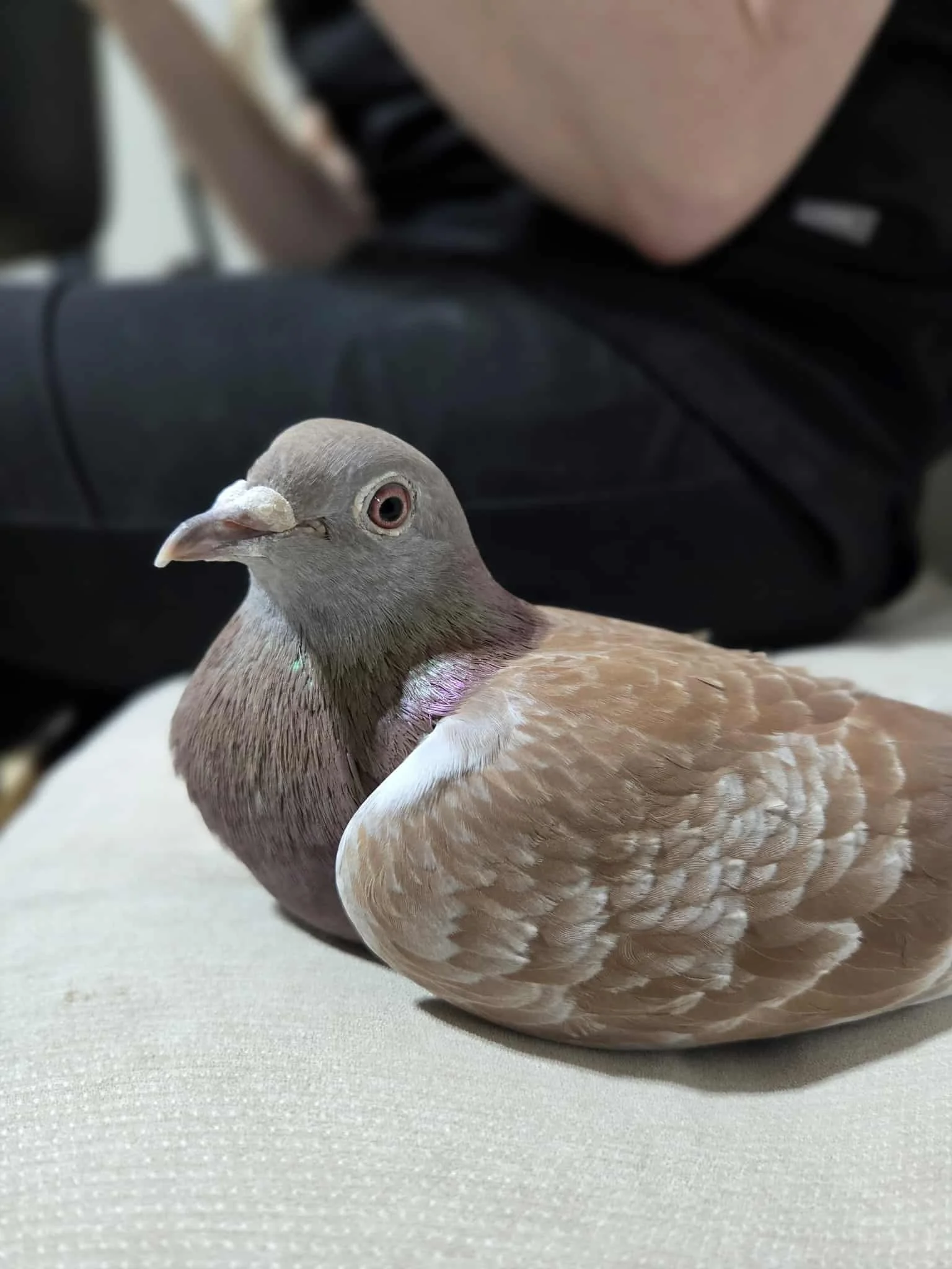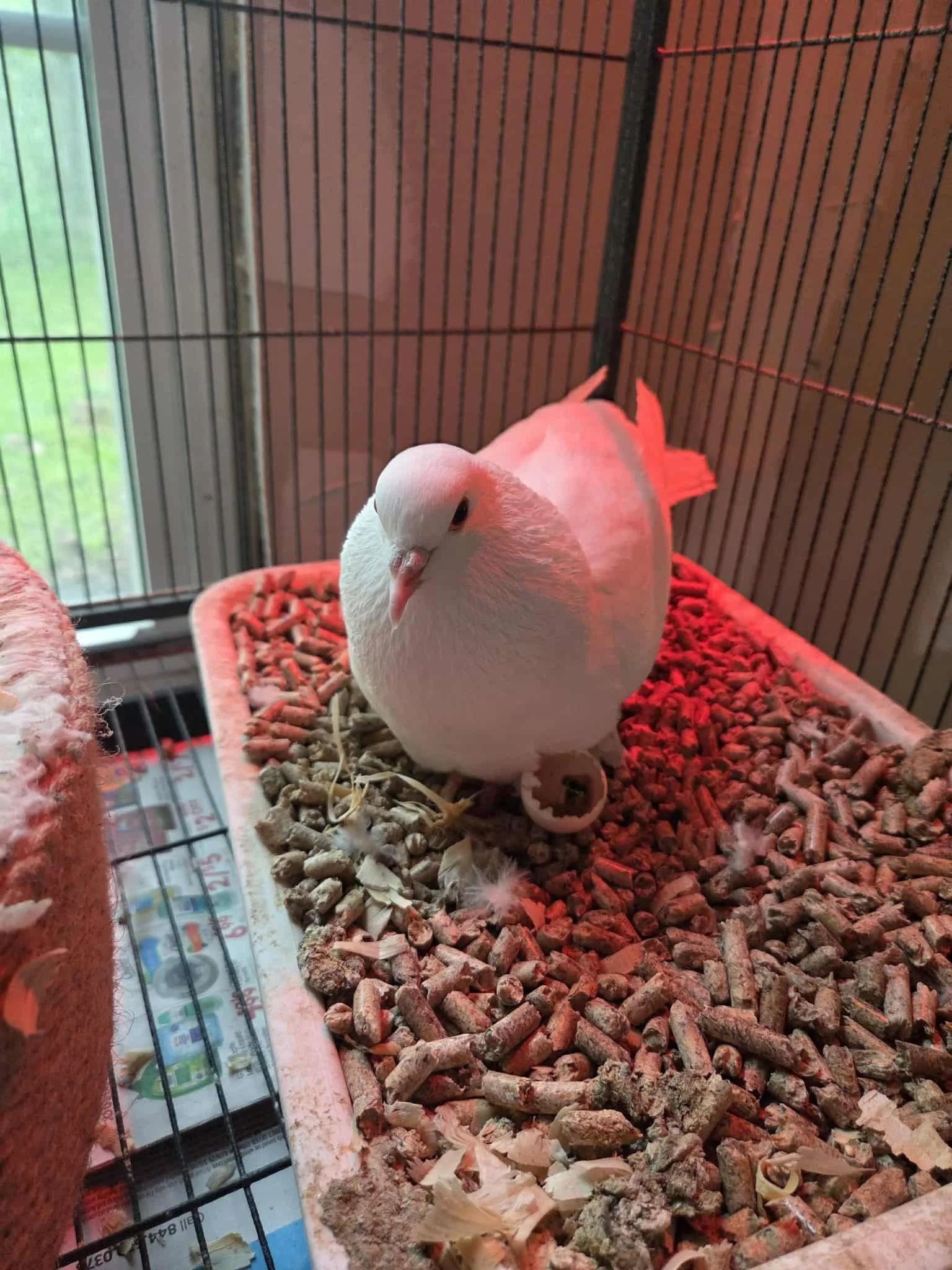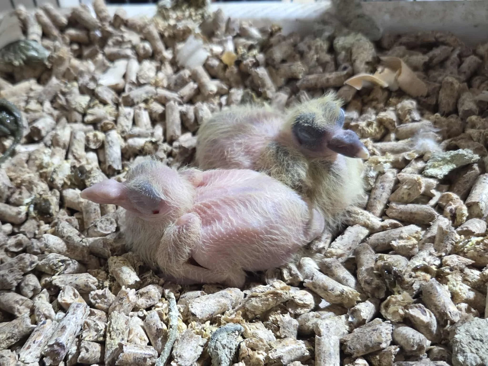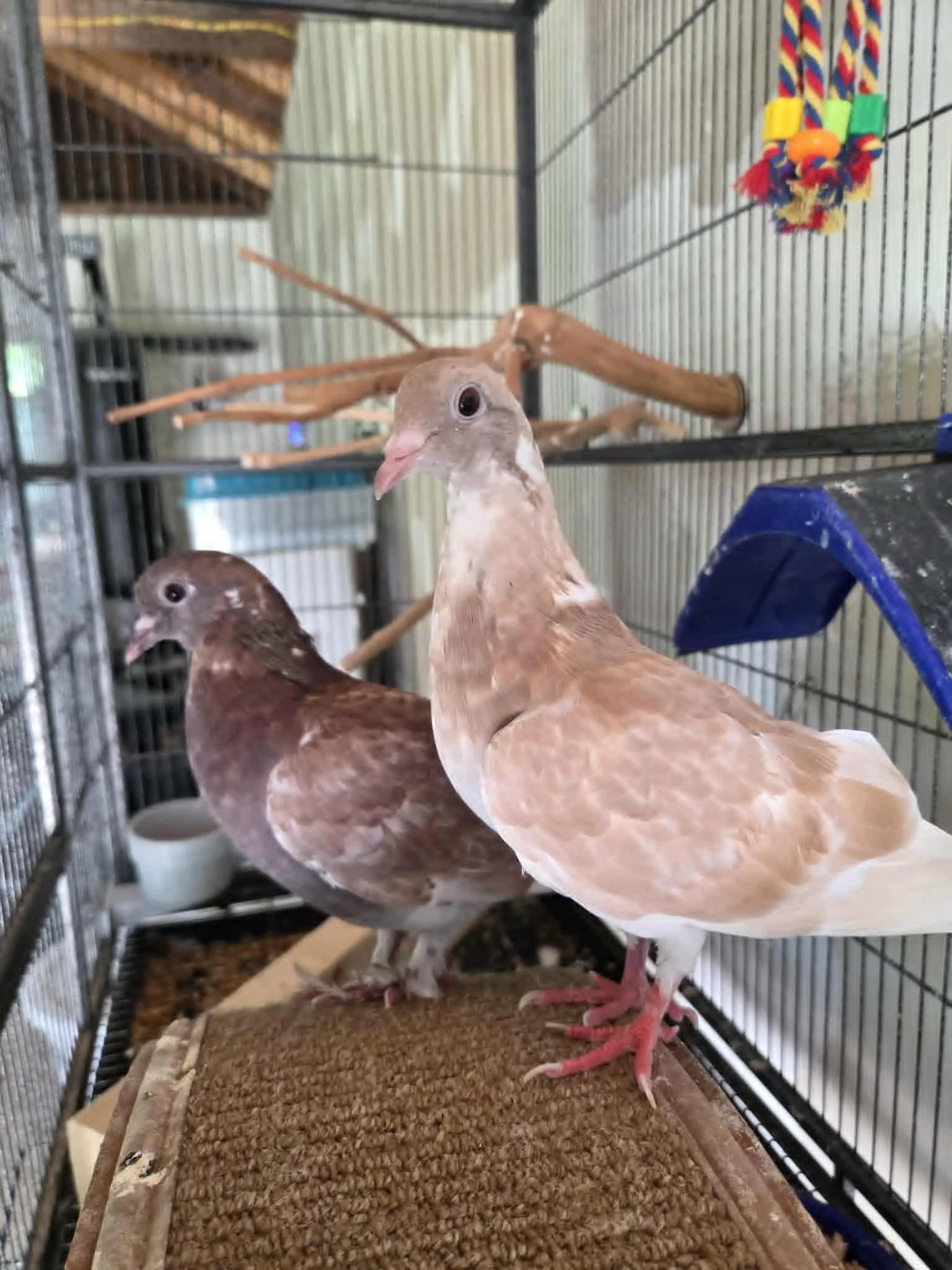 These two sweet pigeons are Griffin and Ruby’s babies. We had the joy of watching them lay their eggs, sit, hatch, and care for their squabs all on their own. Today, they’ve grown into the cutest, gentlest pigeons — full of love and personality