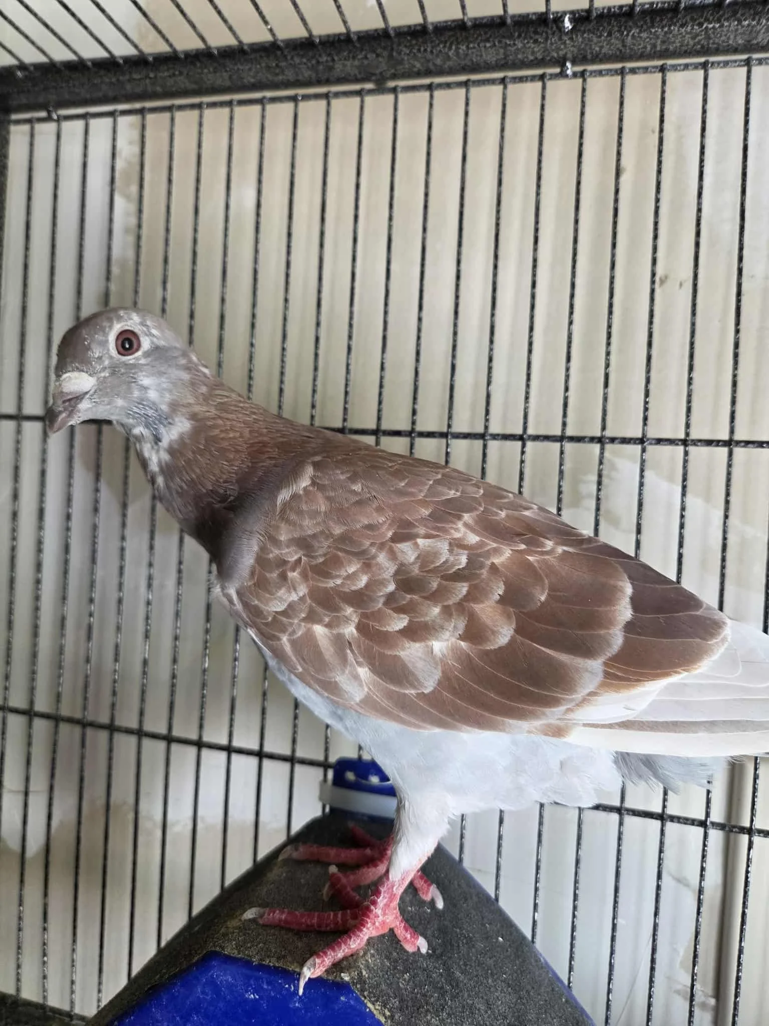 Ruby is a brown and white Homer pigeon who once traveled across many states. She immediately bonded with our tumbler pigeon Griffin. Shortly after being relinquished to us, we discovered that she had a grade 4 heart murmur. She’s now on lifelong medication and thriving with us at the sanctuary.