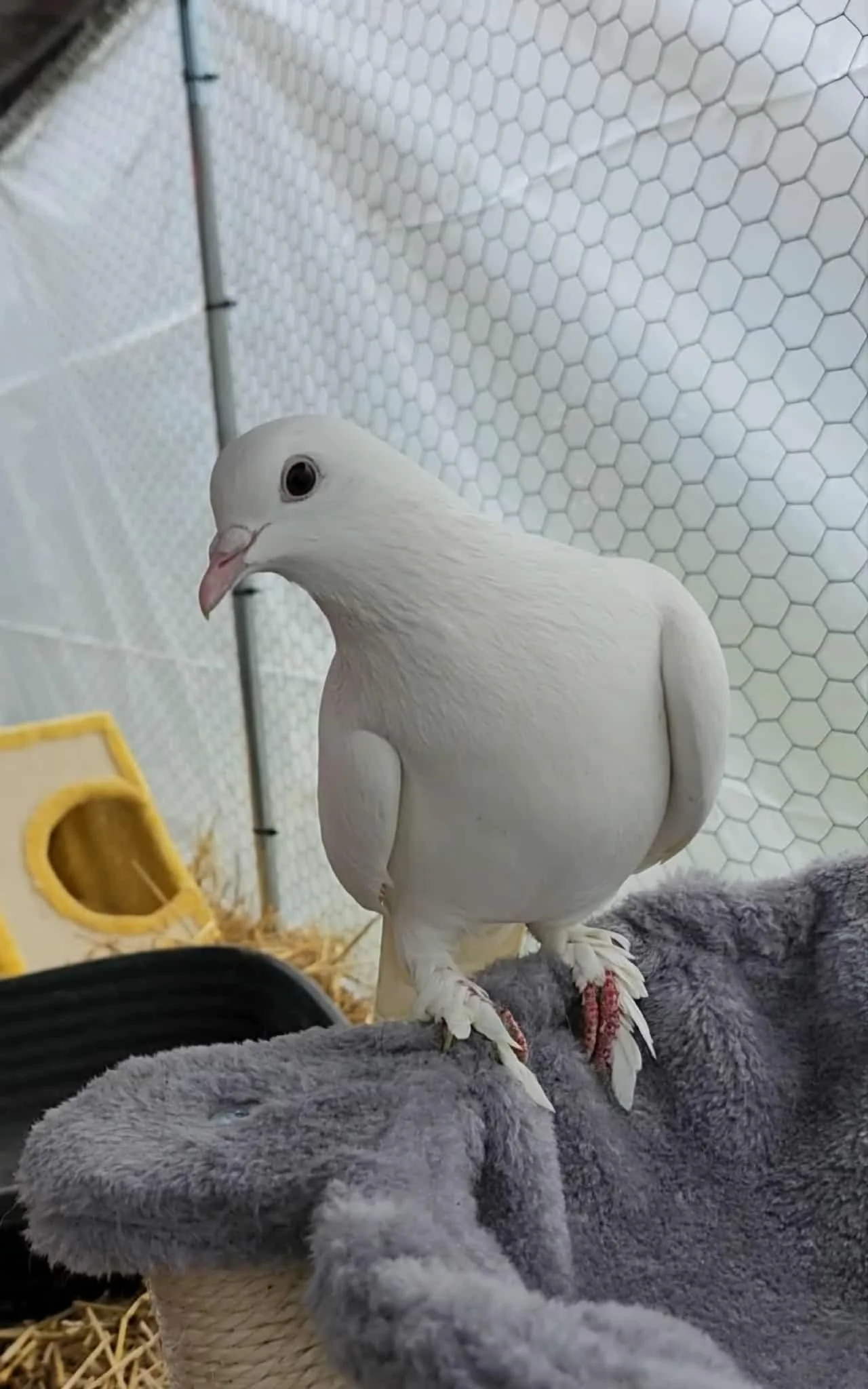 Griffin is our beautiful all-white tumbler pigeon that was relinquished to us on Christmas. Once an indoor-only pet, he now has a safe and happy forever home here at the sanctuary.